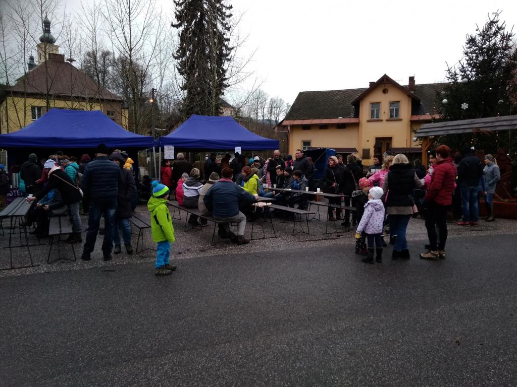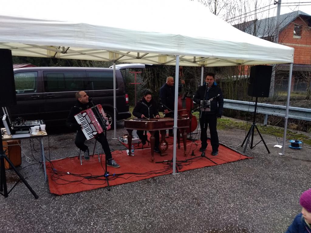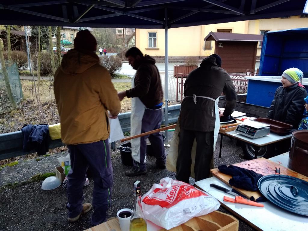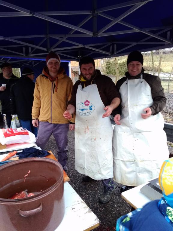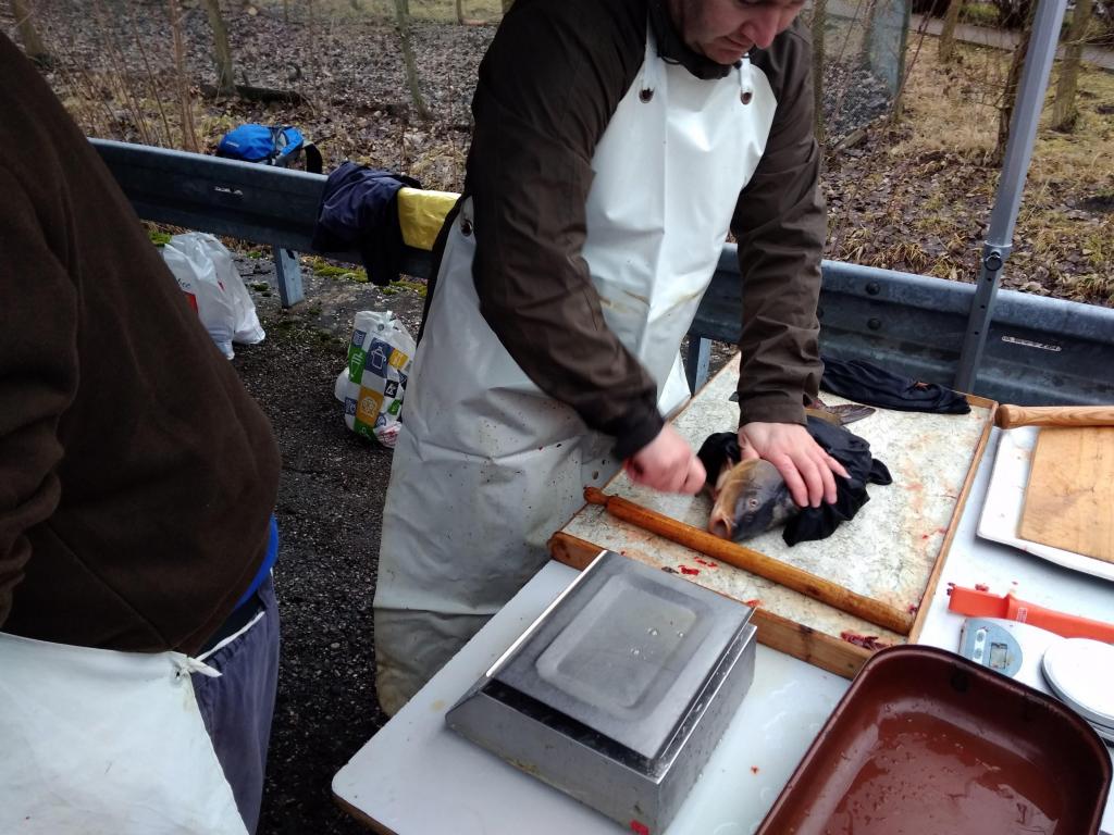 Cimbálovka a prodej kaprů na křižovatce